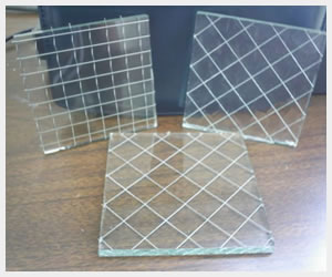 Denominato anche “armato”, è un vetro colato nel quale viene immersa un’armatura di fili metallici cromati, correnti nel verso della